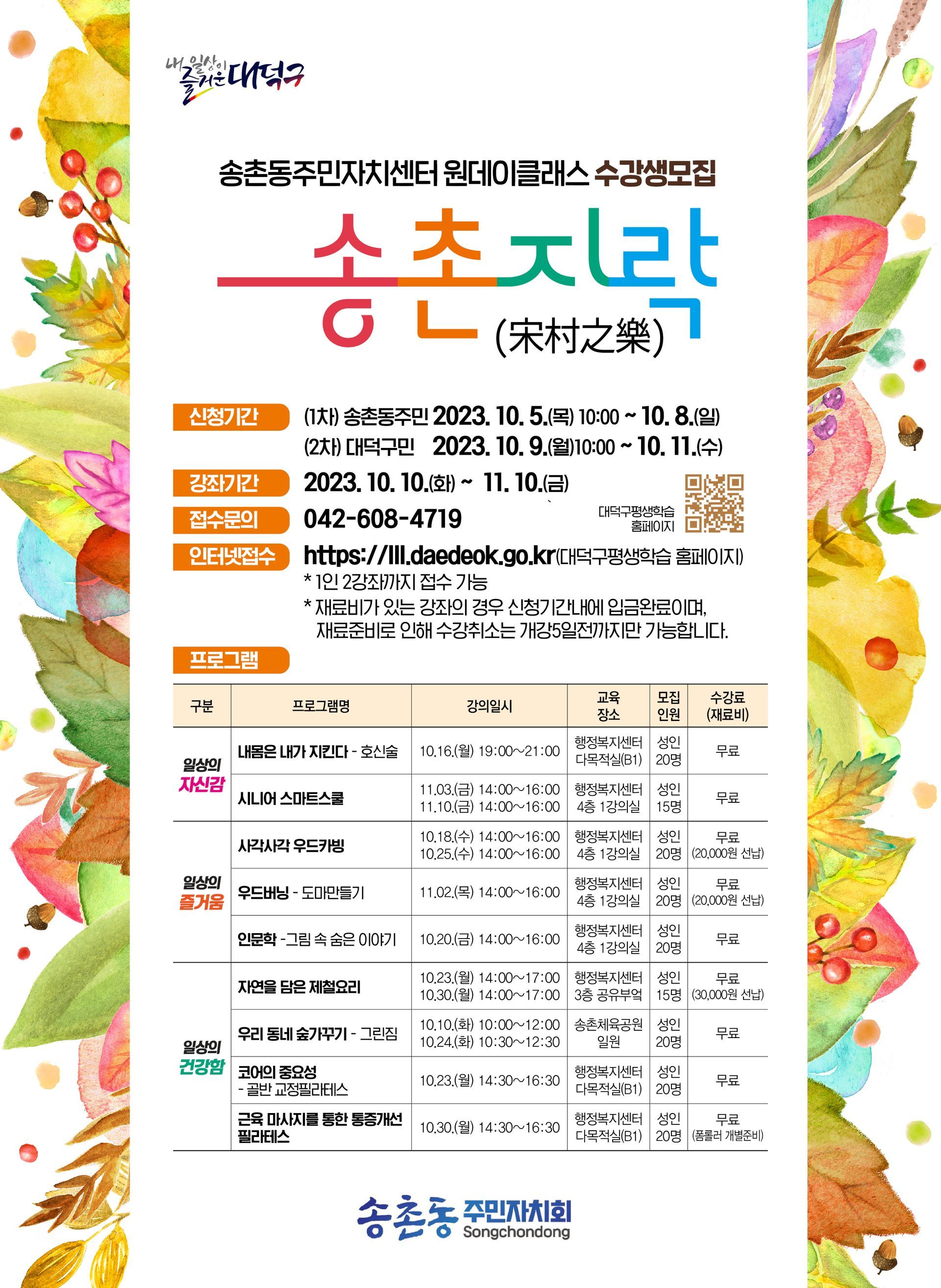 2023 '송촌지락' 송촌동 주민자치센터 특강 프로그램 운영