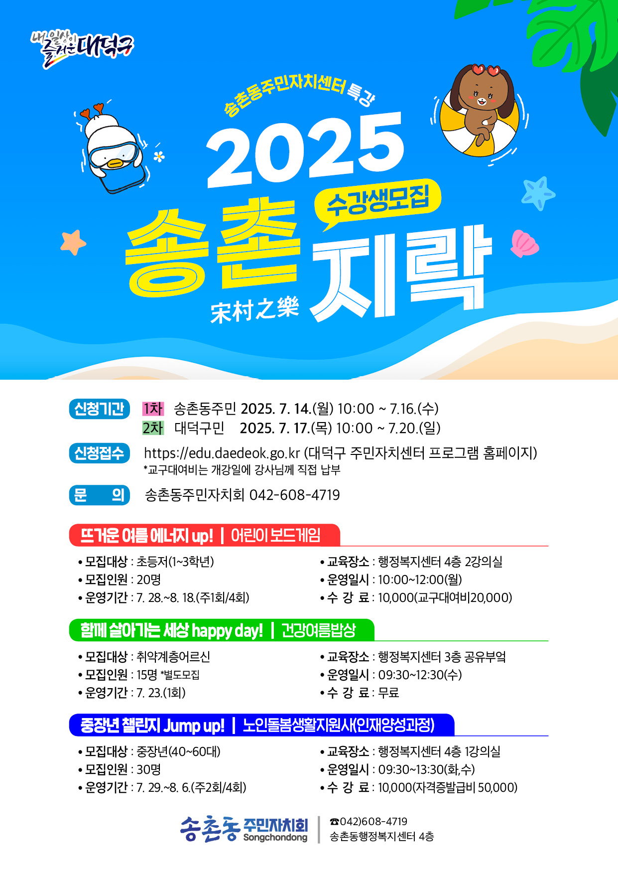 2025 '송촌지락' 송촌동 주민자치센터 특강 프로그램 운영