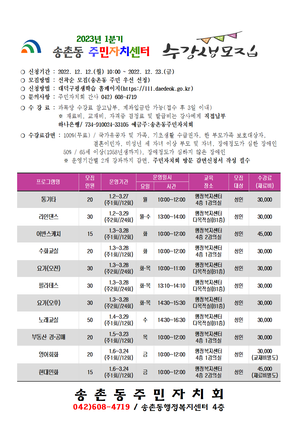 2023년 1분기 송촌동 주민자치센터 운영강좌 입니다.