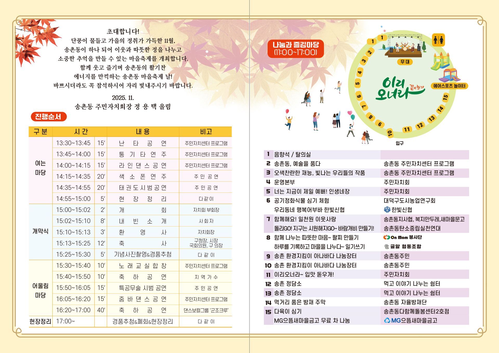 2025년 송촌동 마을축제 '이리오너라~ 같이놀자' 개최