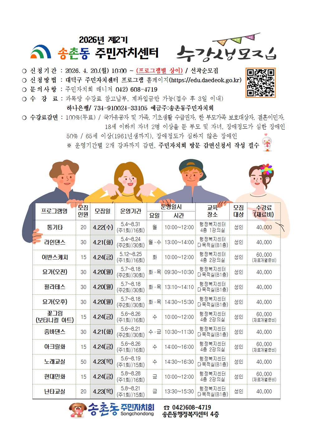 2026년 제2기 송촌동 주민자치센터 프로그램 수강생모집